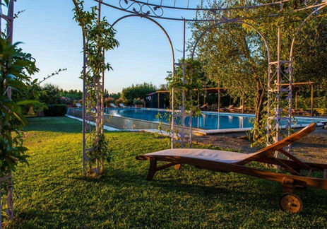 Ceremonin sker fördelaktigt i cypressallén som skänker behaglig skugga, eller nere vid poolområdet för mer utsikt mot toscansk natur.